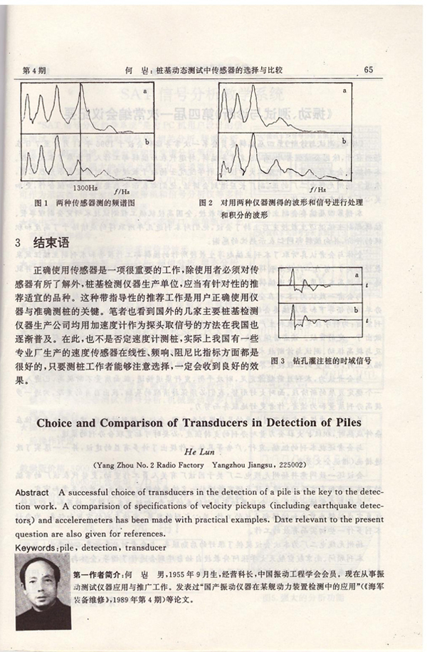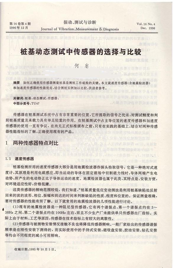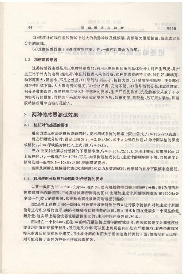 桩基动态测量中传感器的选择与比较《振动测试与诊断》96.4